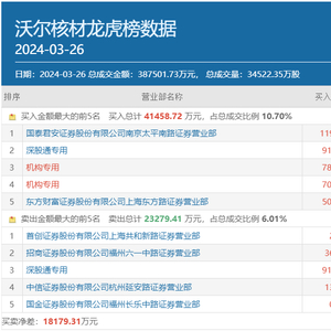 盘后披露的龙虎榜数据显示,知名游资作手新一的常用席位国泰君安证券南京太平南路高居沃尔核材买方榜首,买入金额为1.19亿元。作手新一为新生代一线游资,经常活跃于各大社交论坛,知名度极高,操作剽悍,敢于重仓。值得一提的是,沃尔核材是作手新一3月以来仅有的两只上榜金额超过1亿元的个股之一,由此可见,其对于该股现阶段的博弈价值尤为认可。