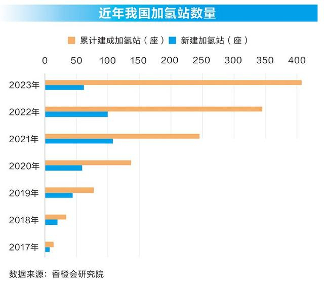 加氢站是氢燃料电池汽车等用氢技术推广的必备基础设施。根据香橙会研究院数据,2023年全国新建成加氢站62座,累计建成407座,数量全球第一。按各地区提出的氢能发展目标,到2025年,我国将建成加氢站超1000座,未来两年加氢站将进入加速建设期。中石化、厚普股份、上海舜华等企业在氢能产业及加氢站建设方面积极布局。