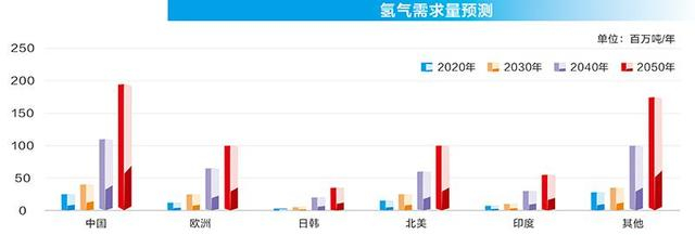 据中国氢能联盟数据,到2050年,若要实现净零排放,全球对氢气的需求量将达到6.6亿吨,其中中国约为1.95亿吨,占比近30%。从增速看,2020年~2050年间每10年中国氢气需求量平均复合增速为4.8%、10.6%、5.9%。