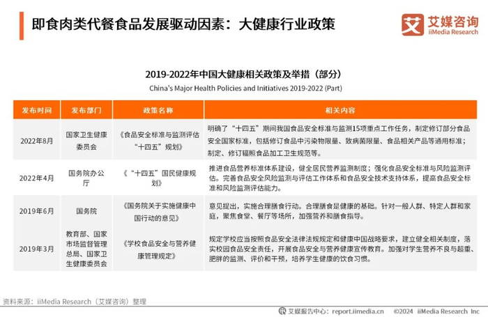 即食肉类代餐食品发展驱动因素:大健康行业政策