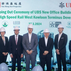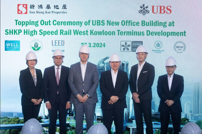 瑞银集团UBS今日(3月27日)就其位于高铁西九龙总站发展项目上盖的香港新办公大楼举行封顶(平顶)仪式,有关项目由新鸿基地产(00016.HK)发展建设。