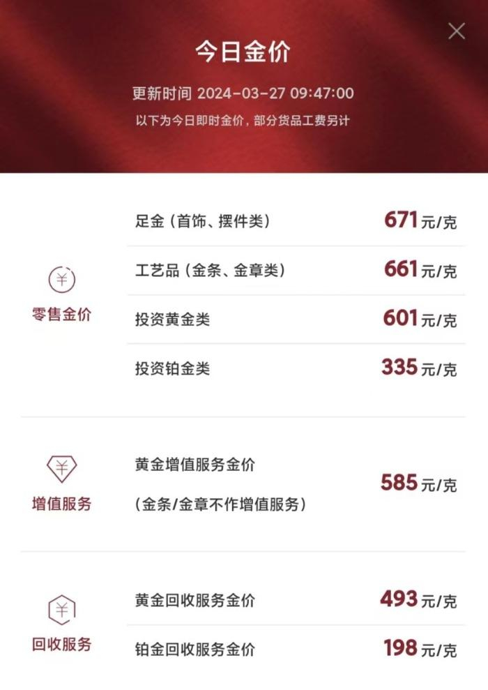 大皖新闻讯最近黄金大涨,足金首饰、摆件类3月27日也高达671元/克,但逛金店的顾客依旧络绎不绝。买金条当作投资、定期攒金豆当作存钱、游走在各大珠宝品牌店挑选心仪的黄金首饰……近年来,年轻人对黄金的兴趣逐渐攀升,有人笑称这是年轻人的“黄金血脉”开始觉醒,含“金”量也越来越高。