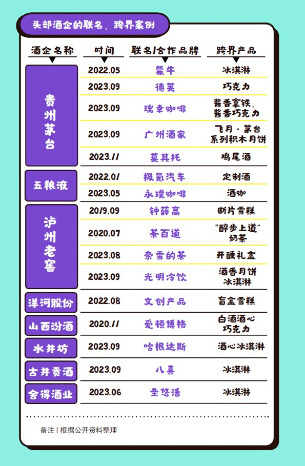 部分白酒企业联名跨界案例/《向新而行——2024中国白酒消费观察报告》