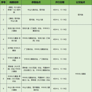结合往年清明节客流特点和市民祭祖出行需求,广州巴士集团已制定细致出行计划。针对中山八路、革新路(光大花园)、宝岗大道、吉祥路、白云路、天安番禺节能科技园、浔峰岗(地铁站)等热点区域,特别开设往返银河园、中华永久墓园、祥和墓园、长青墓园等墓地的祭祖专线,为市民提供更为贴心、周到的服务。