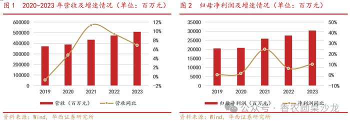 经营业绩持续向好,净利保持双位数增长。公司2023年营业收入达到 5,078.4 亿元,比上年增长 6.9%;实现归母净利润304.5亿元,同比增长 10.3%。