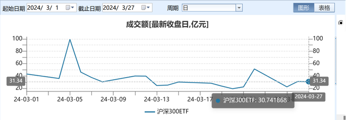 拉长时间来看,这9只产品今日成交额并未在近期成交额的峰值区间。比如,成交额最大的华泰柏瑞沪深300ETF,本月成交额的峰值在月初,接近百亿元,上周五也一度超过50亿元。