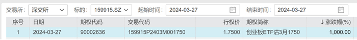 领跌的创业板指,在下午2点左右以后开始持续震荡下行。而期权市场上,创业板ETF沽3月1750合约价格在今日表现震荡,今天下午2点半以后,价格波幅加大,截至收盘涨1000%,即上涨了0.0110,报0.0121。