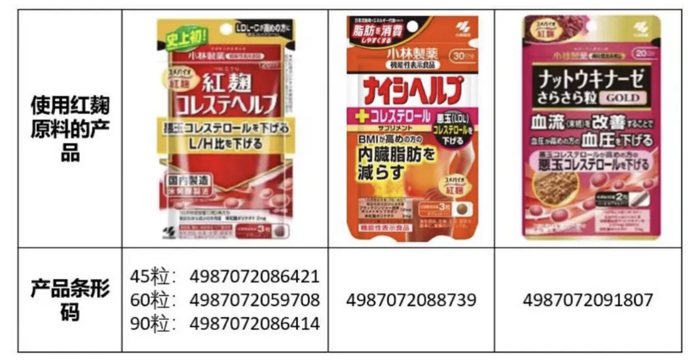 小林制药中国召回通知中提及的产品 来源:小林制药中国官方公众号
