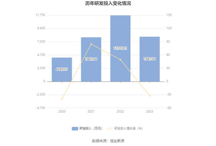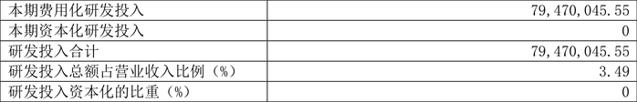 2023年全年,公司研发投入金额为7947.00万元,同比下降32.21%;研发投入占营业收入比例为3.49%,相比上年同期下降0.05个百分点。此外,公司全年研发投入资本化率为0。