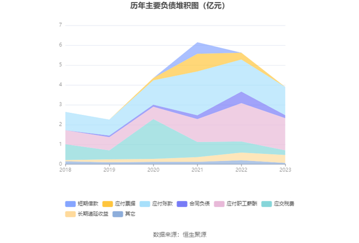 负债重大变化方面,截至2023年年末,公司合同负债较上年末减少74.59%,占公司总资产比重下降1.68个百分点;应交税费较上年末减少59.36%,占公司总资产比重下降1.46个百分点;应付职工薪酬较上年末减少16.20%,占公司总资产比重下降3.42个百分点;应付账款较上年末减少11.97%,占公司总资产比重下降2.73个百分点。