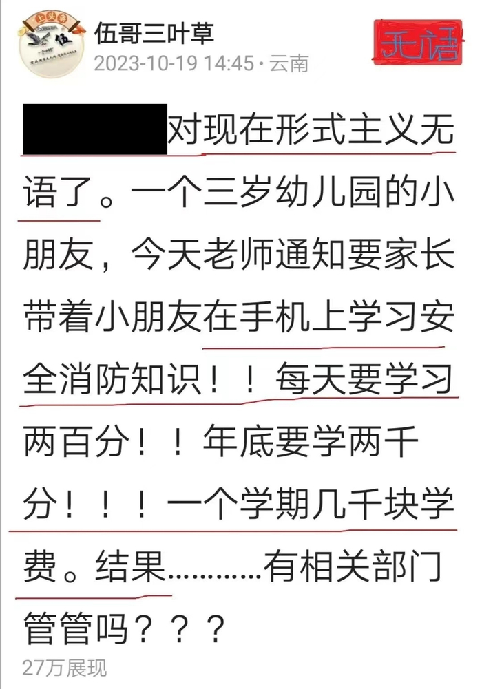 有家长吐槽这项活动初衷是好的,但未免有些形式主义。并且除了回收牛奶盒,常见的制作绘本、学习安全知识攒积分、各种手工任务,都让家长苦不堪言。甚至有网友说,为了完成老师布置的做纸房子的作业,不得已干脆去寿衣店买了个冥房。