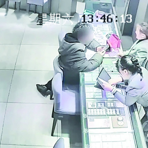 正在金店购买黄金套现的犯罪嫌疑人