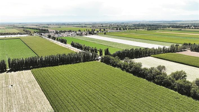 再向前便来到阡陌纵横的田园风光带,道路两侧大片良田,连绵数百里,四季景色各异。春夏是大片金黄色的麦田,麦田高低起伏,就像一片金色的海洋;秋季则是硕果累累,一棵棵玉米就像整装待发的士兵,硕大的玉米棒像一枚枚军功章挂在他们胸前。自八十四团十一连南入口至该团三连东北十字路口,田园风光带全长15公里,沿线还种植有不少珍贵树种,也为田园风光增添了新看点。