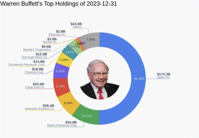 巴菲特最大仓位并不是苹果,而是BNSF货运铁路,价值1200亿美元,占巴菲特资产近四分之一,远大于苹果的仓位(500亿美元)。