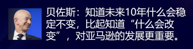 亚马逊的创始人贝佐斯曾在一个演讲中提到,他经常被人问到未来10年什么会发生变化,但是很少人问他“什么不会变化”。