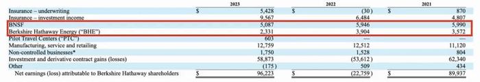 这一点比较少人关注到,因为BNSF铁路是巴菲特全资拥有的,没有上市股票。