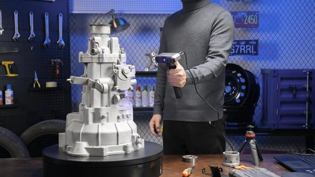 使用3D扫描仪对汽车变速箱进行3D扫描。