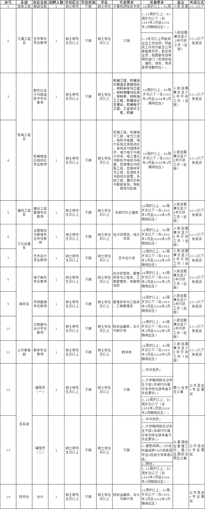 福州职业技术学院面向全国诚聘教师、辅导员、行政人员14名
