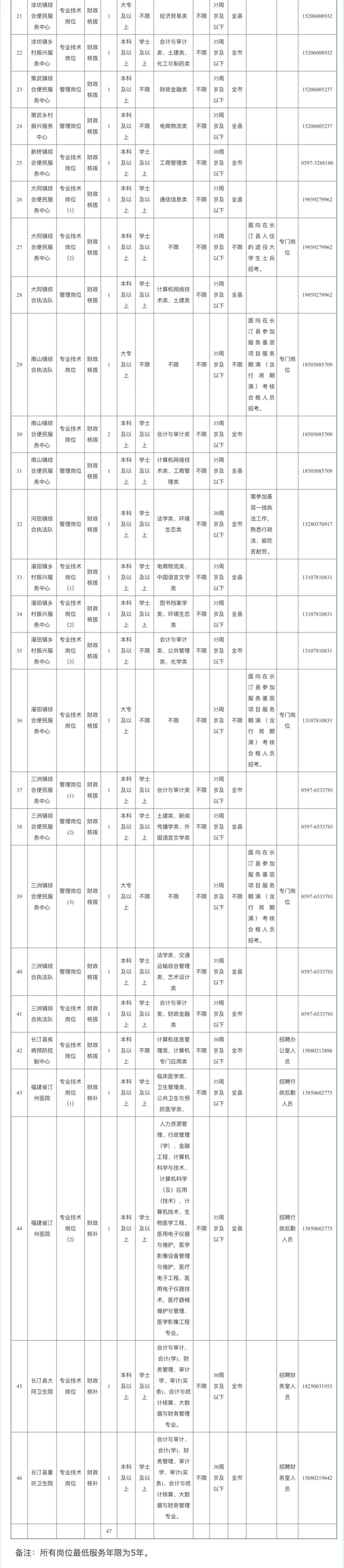 长汀县事业单位公开招聘工作人员47名