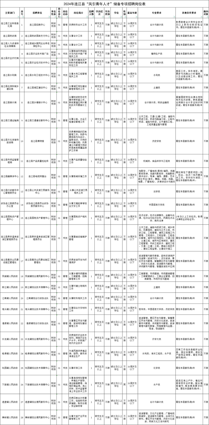 连江县计划招聘硕士研究生及以上学历人才28名