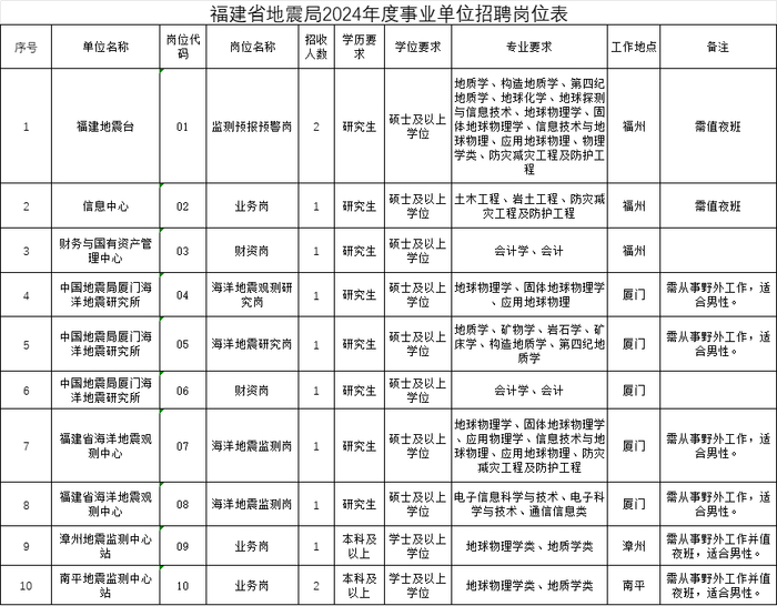 福建省地震局公开招聘事业单位工作人员12名