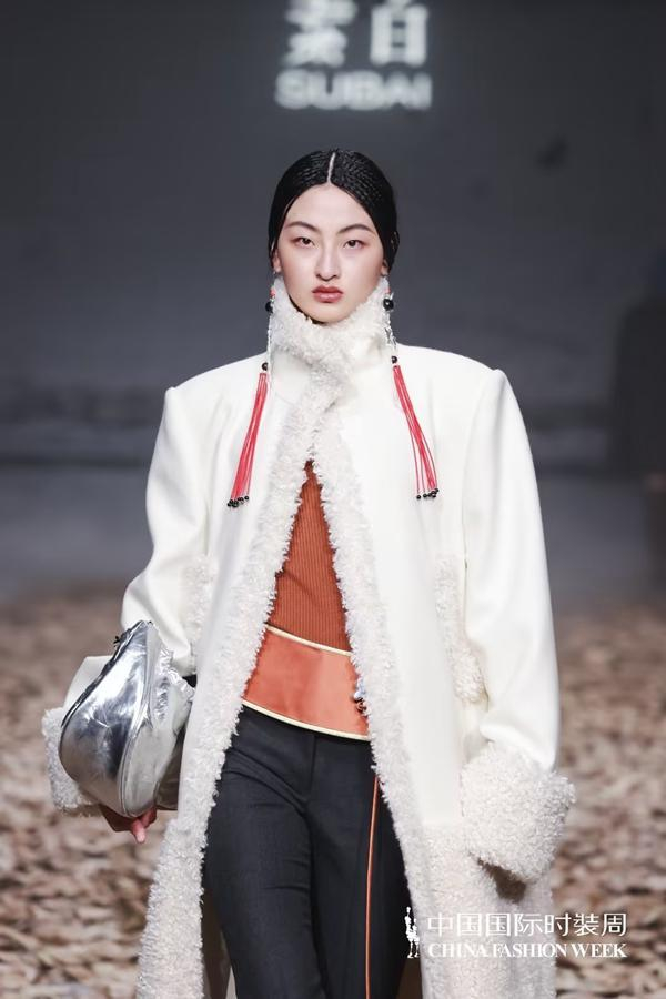 中国网时尚3月27日讯 近日,中国原创设计师品牌素白再次登上中国国际时装周,发布2024秋冬系列新品。作品在现代审美习惯和穿着诉求里展示了详实的民族风格。从颜色、面料、工艺制法等方面呈现了藏地服饰设计语汇,又以时尚的剪裁、廓形、立体造型实现了时空融合。主题“经溯”描述的是设计师马乖心灵净化、思路重置、品牌新质开启的旅程。