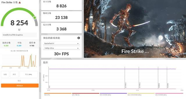 3DMark各项测试可以看到,锐炫核显在DX12 TimeSpy图形性能测试上得分为3469;DX11 Fire Strike测试得分8826,整体性能释放要高于酷睿Ultra 7 155H集成的锐炫核显,另外相对于以往的锐炬Xe核显,锐炫核显整体性能实现了翻倍。