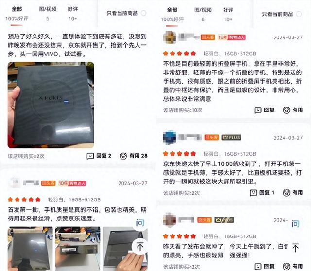 通过京东页面的消费者评价不难看出,vivo X Fold3系列折叠屏在轻薄、影像、体验等多个方面均获得了用户的认可,其中不乏京东10年老用户、vivo手机老用户。同时,大家也纷纷点赞京东“先人一步”计划,对于能优先抢到新品的体验和京东能够在27日就送到的速度表示满意。这些真实评价不仅反映了首批vivo X Fold3系列折叠屏的心声,更为其他准备入手这款新机的用户提供了宝贵的参考信息。