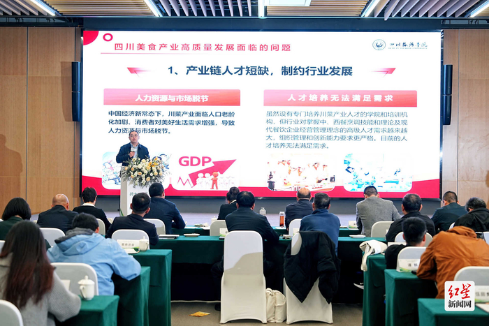 四川旅游学院烹饪学院院长李想现场分享到,川菜,作为分布最广且具备社交属性的菜系,不仅需要保持传统文化特色,同时也需要不断进行创新,挖掘川菜文化资源,增强文化赋能,强化品牌效应,同时,要培养龙头企业,建立行业协同机制,加强合作交流,使用人工智能等技术,提升川菜产业科技含量,开发出更多更好的特色美食,提高消费者的体验感。