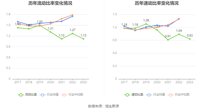 2023年,公司流动比率为1.12,速动比率为0.93。