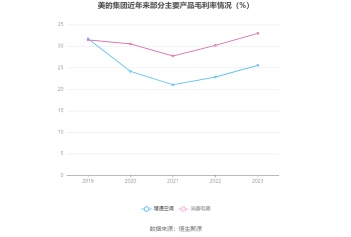 分产品看,暖通空调、消费电器2023年毛利率分别为25.57%、33.00%。