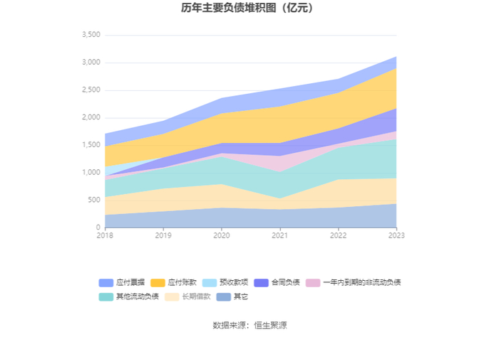 负债重大变化方面,截至2023年年末,公司合同负债较上年末增加49.38%,占公司总资产比重上升1.97个百分点;其他流动负债较上年末增加23.26%,占公司总资产比重上升0.98个百分点;应付账款较上年末增加12.92%,占公司总资产比重下降0.28个百分点;一年内到期的非流动负债较上年末增加99.67%,占公司总资产比重上升1.26个百分点。
