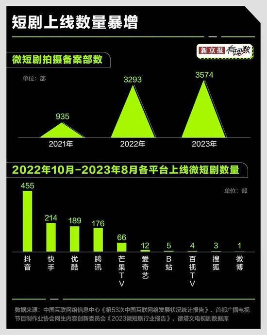 从《逃出大英博物馆》到《我在八零年代当后妈》,微短剧在过去一年迎来了爆发,根据国家广电数据,2022年微短剧拍摄备案数量达到3293部,相比2021年实现翻倍增长;2023年3574部,同比增长9%。看来横店变“竖店”,一个场景多个剧组的消息并不夸张。