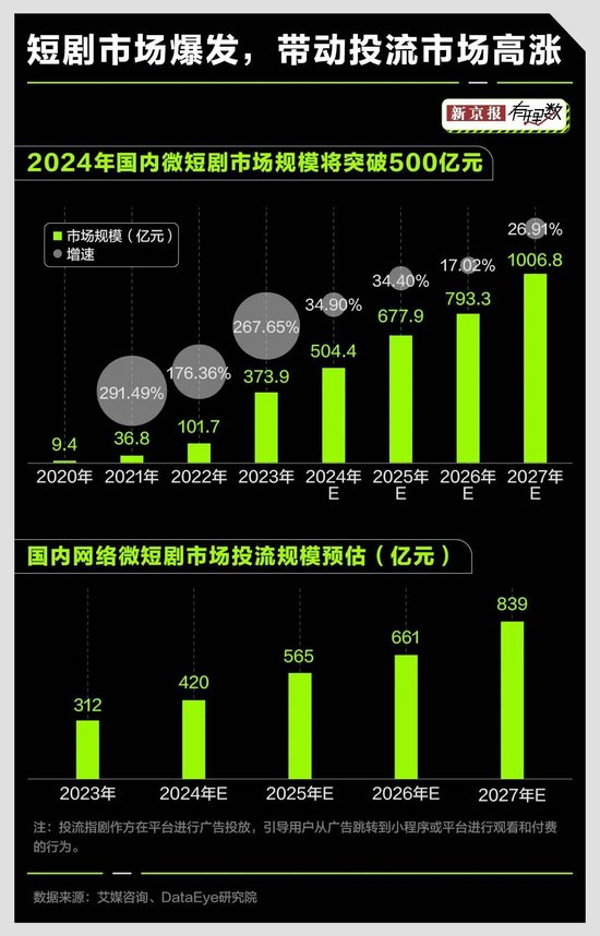 微短剧之所以能够爆火,与其精准投放有分不开的关系,“买量投流”,是决定一步微短剧是否赚钱的重要环节。行业报告认为,2023年随着微短剧的火爆,投流市场规模船随水涨,达到312亿元。