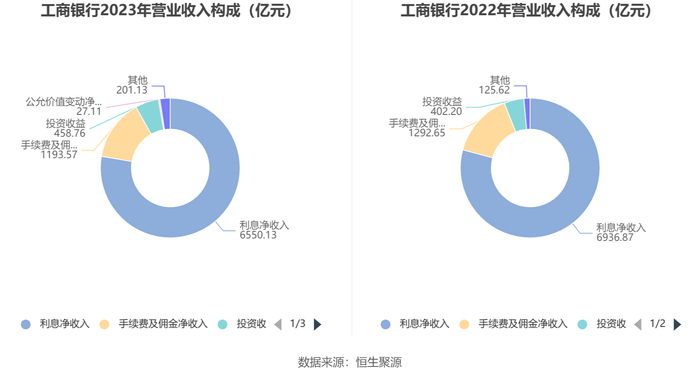 截至2023年末,工商银行三年营业总收入复合增长率为-1.52%,在银行行业已披露2023年数据的7家公司中排名第7。三年净利润复合年增长率为4.84%,排名6/7。