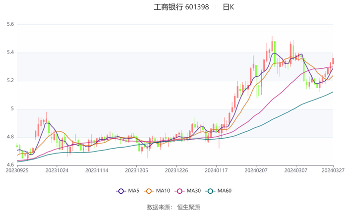 工商银行:2023年净利润同比增长0.79% 拟10派3.064元