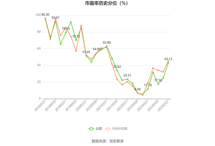 市盈率为负时,不显示当期分位数,会导致折线图中断。