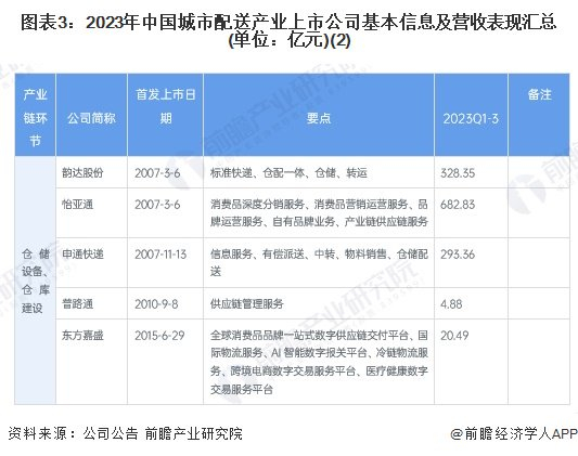 城市配送产业上市公司汇总
