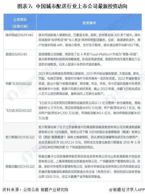 城市配送行业上市公司最新投资动向