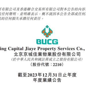 中国质量新闻网讯 近日,北京京城佳业物业股份有限公司发布截至2023年12月31日止年度业绩公告。