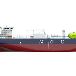 48000立方米LPG/液氨运输船是上船院液化气团队在综合考虑MGC船东需求基础上研发的经济性更佳的Super-MGC新船型。该船配置3个A型独立液货舱,除装载常规的LPG外,还可以装载液氨、氯乙烯单体(VCM)等多种液化气货物。该船采用单燃料系统,考虑氨燃料系统和碳捕捉系统预留(Ready),配备高压单燃料主机及轴带发电机,安装脱硫塔装置,载重量、航速、油气耗指标优异,EEDI满足三阶段能效要求。