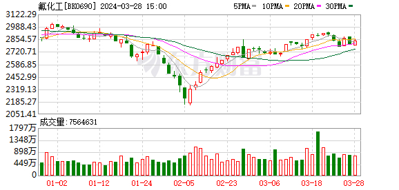 行情表现来看,3月以来氟化工概念股的股价平均上涨0.8%,跑赢大盘,联创股份涨幅居首,月内涨28.54%;巨化股份受萤石及制冷剂等价格走高影响,3月涨14.75%,且股价昨日创历史新高。
