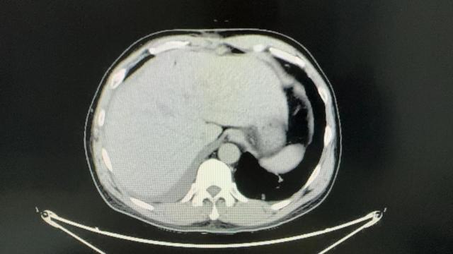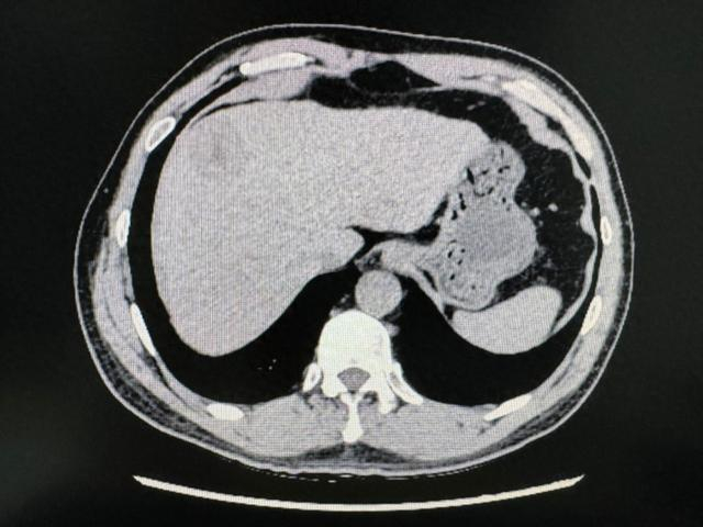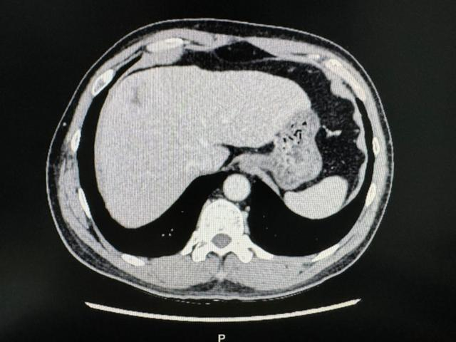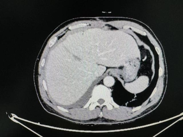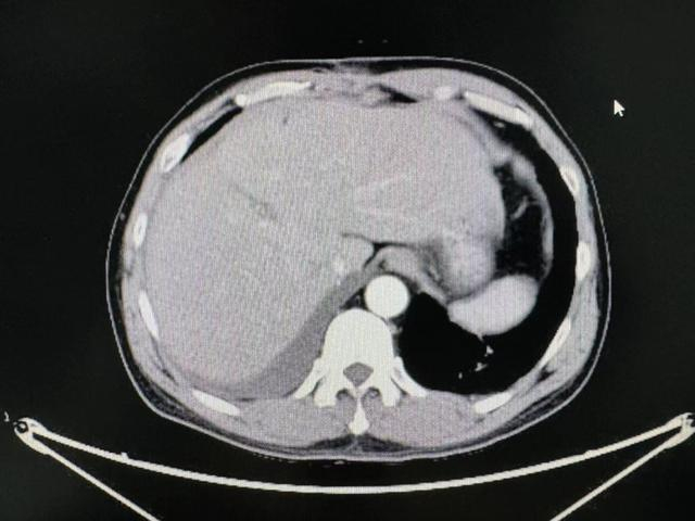 在住院期间,患者查上腹部CT后提示肝左右叶交界处肝癌,经同济医院肝胆外科中心主任谭蔚锋会诊后进行后续治疗。
