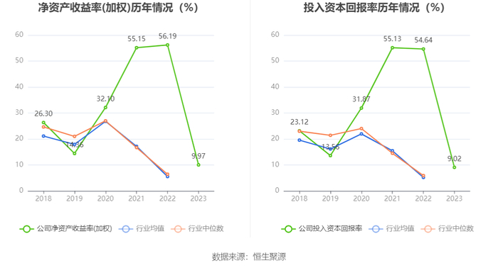 数据显示,2023年公司加权平均净资产收益率为9.97%,较上年同期下降46.22个百分点;公司2023年投入资本回报率为9.02%,较上年同期下降45.62个百分点。