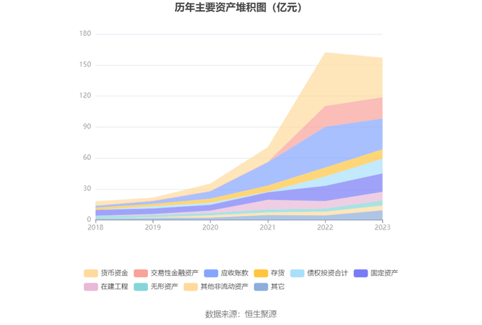 资产重大变化方面,截至2023年年末,公司货币资金较上年末减少26.46%,占公司总资产比重下降7.69个百分点;应收账款较上年末减少24.08%,占公司总资产比重下降5.24个百分点;债权投资合计较上年末增加57.78%,占公司总资产比重上升3.49个百分点;固定资产较上年末增加21.35%,占公司总资产比重上升2.31个百分点。