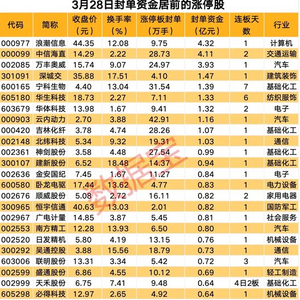 3月28日,A股市场收盘共83股涨停,剔除4只ST股后79股涨停,39股封板未遂,整体封板率为68.03%。