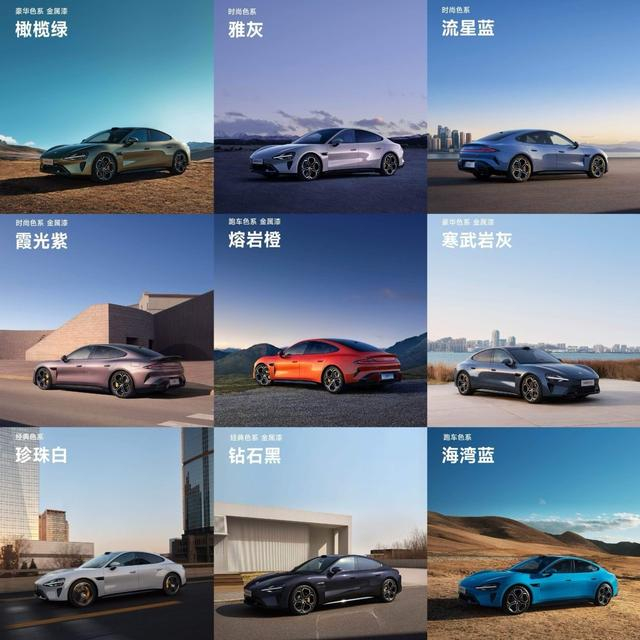 SU7首发将有9款颜色。小米SU7的内饰颜色和轮毂轮胎各有4种选择。
