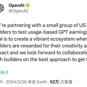 该公司表示,将要和一群美国开发者合作,测试GPT基于使用情况的收入。
