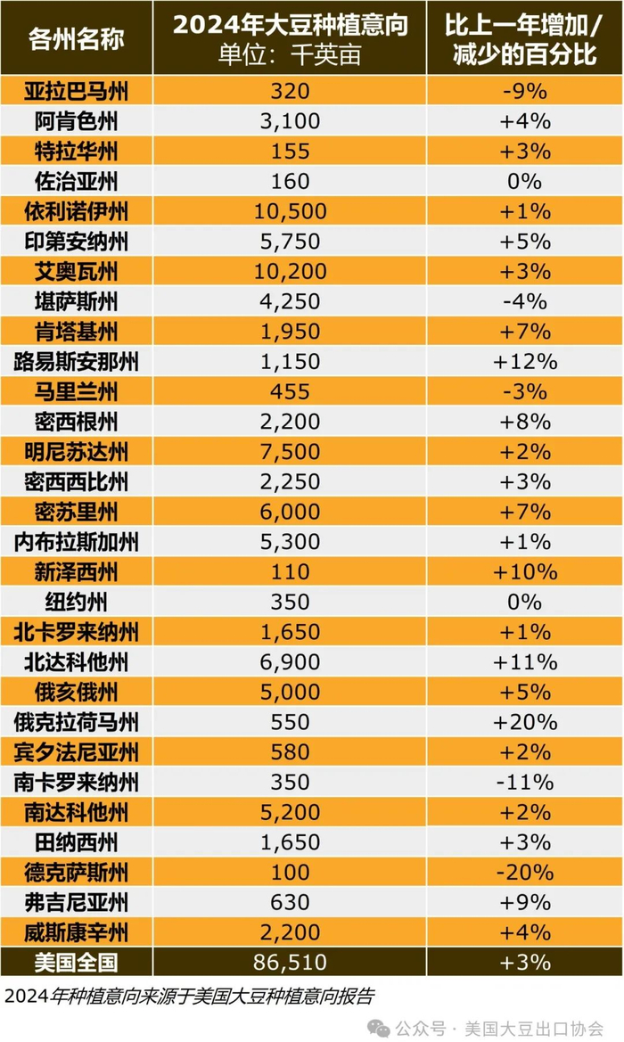 各州及美国全国大豆种植意向