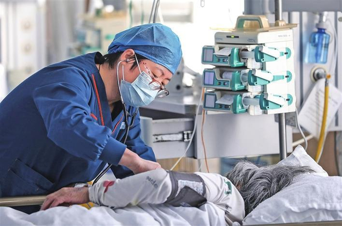 今年51岁的曾艳红是辽宁省台安县恩良医院重症监护病房(ICU)主任。从17年前该院ICU创建以来,她带领医护人员夜以继日地挽救急危重症患者。图为曾艳红近日在ICU病房内查看患者病情。新华社记者 姚剑锋 摄